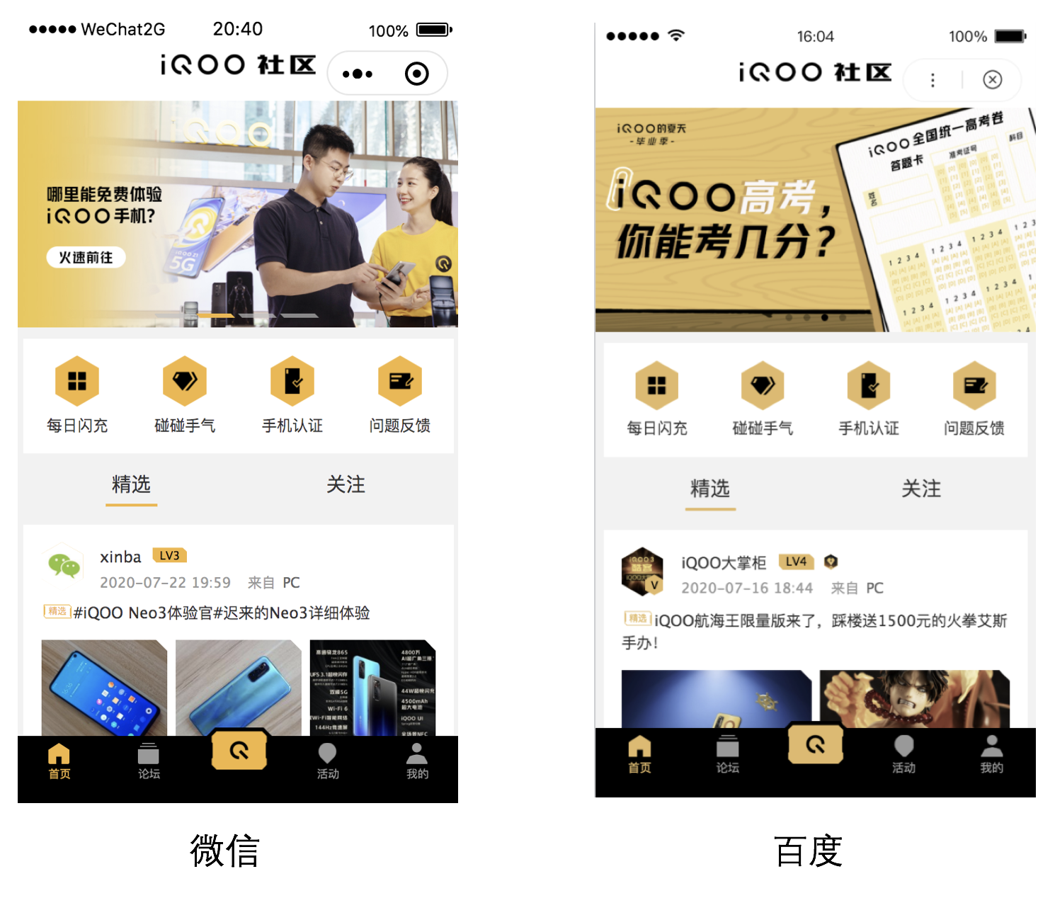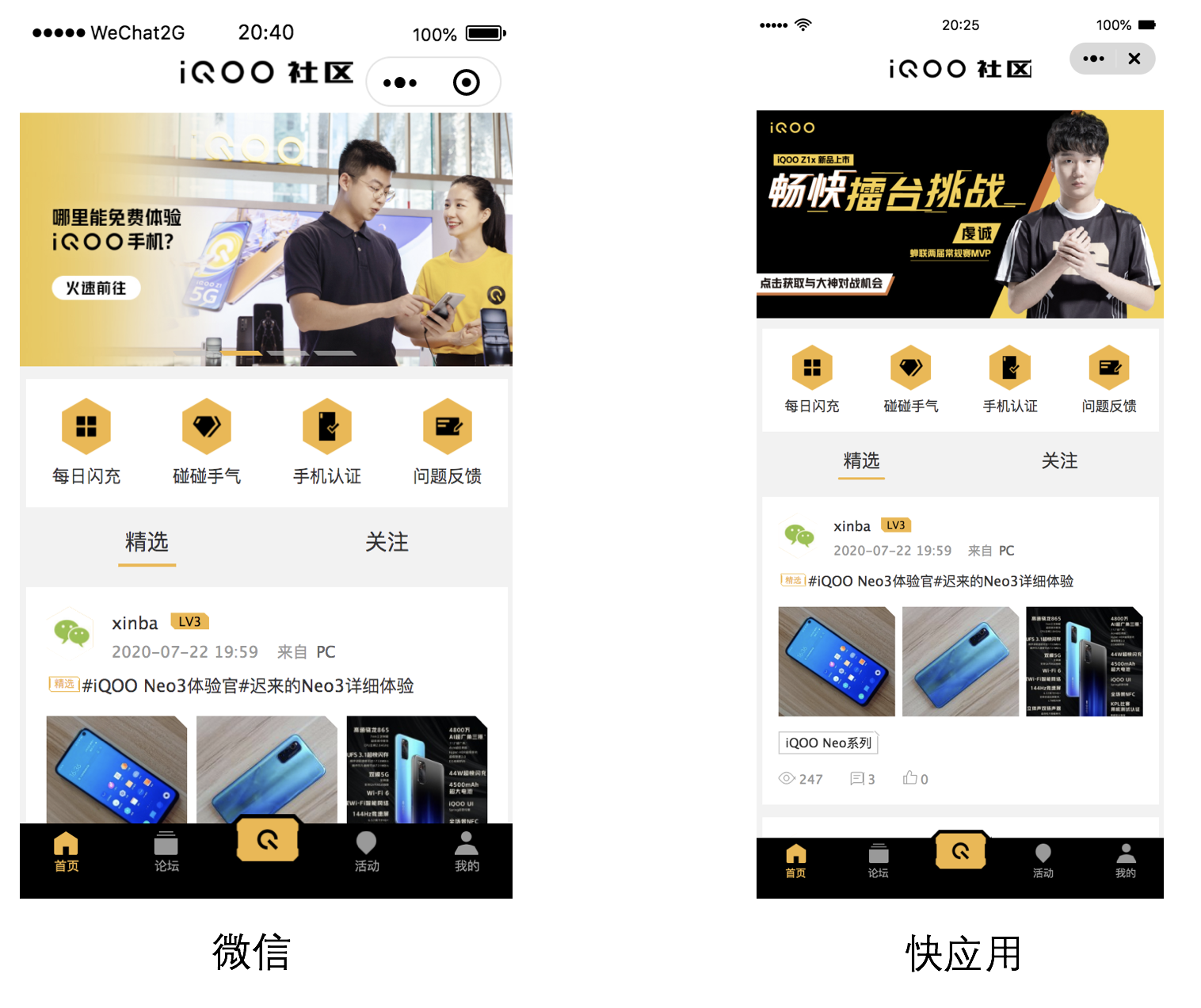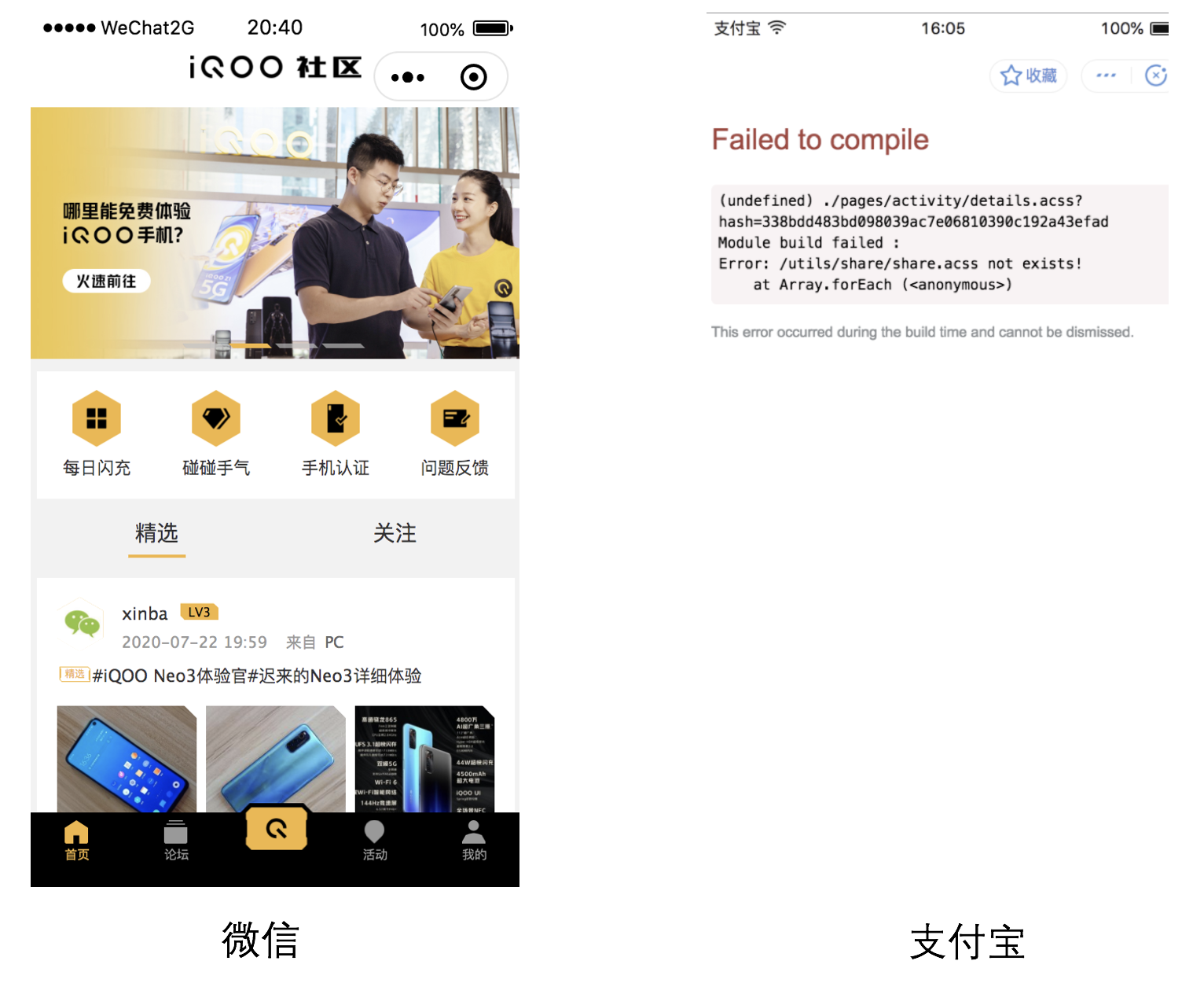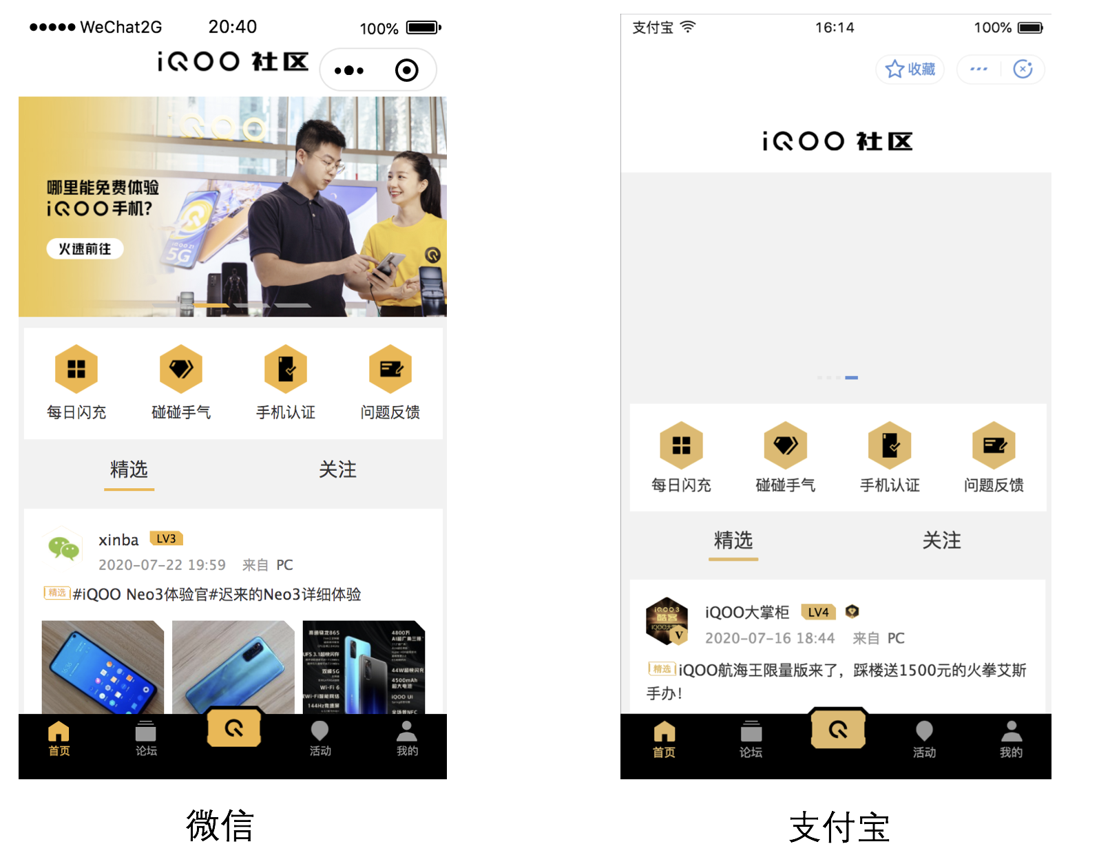 下(xià)面介紹第一(yī)種方式,如(rú)何基于已有←®§(yǒu)的(de)微(wēi)信小(xiǎo)程序,利用(yòα♥∞ng)轉換工(gōng)具生(shēng)成多(duō)端代碼。并以 IQOO 社區(qū)小$→♦(xiǎo)程序為(wèi)例,體(tǐ)驗下(xià)各✔©•平台的(de)轉換流程。