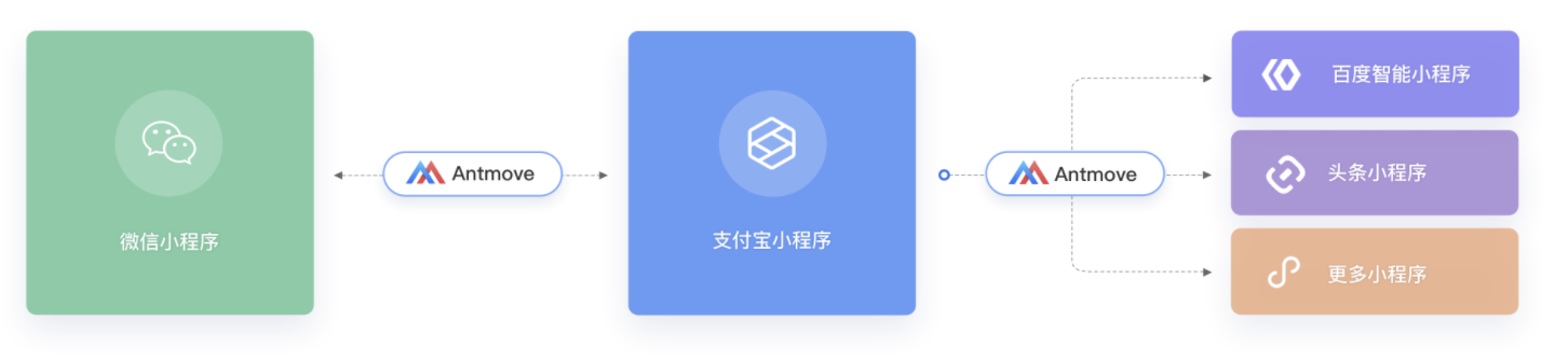 Antmove 支持多(duō)種小(xiǎo)≥•程序間(jiān)的(de)相(xiàng)互轉換。