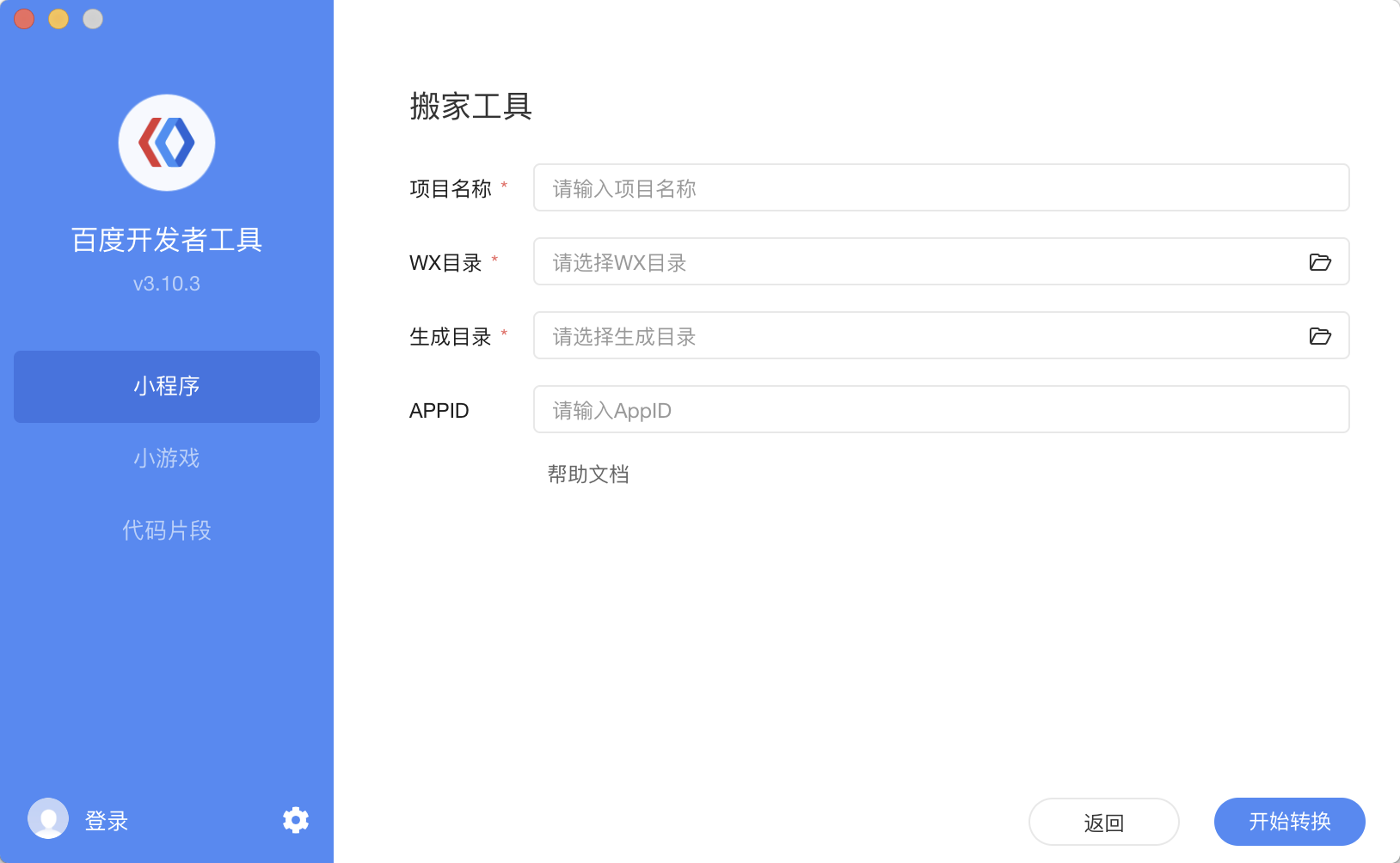 百度小(xiǎo)程序官方文(wén)檔上(shàng)提供了(le) 轉換工(gōng)具 '®£$
