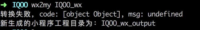 - 命令面闆,輸入 hap:transfer wechat minipro≥ ↑gram into Quick App