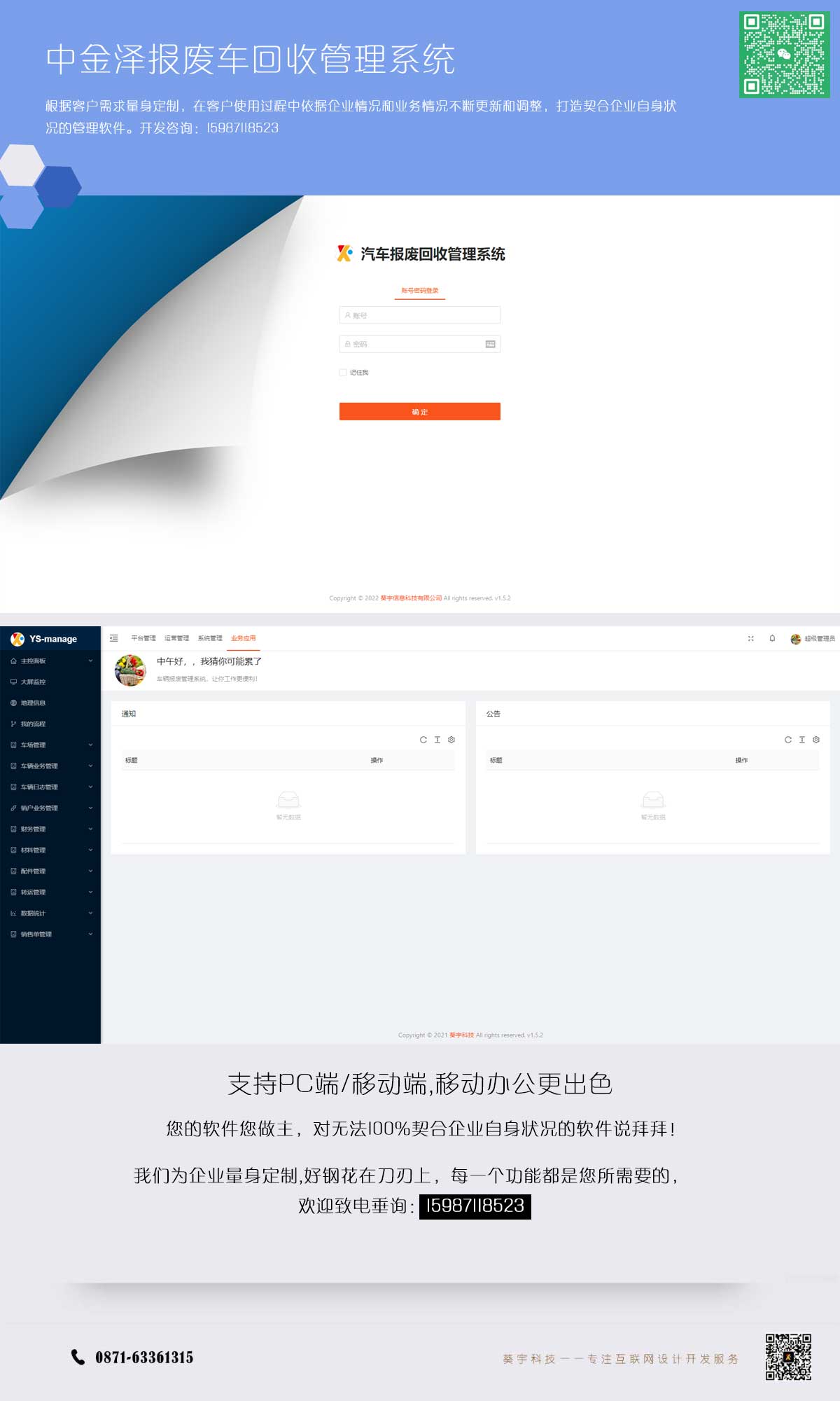 完善的(de)拆解機(jī)制(zhì),靈活的(de)拆解流程,嚴謹的(de)業α®σ(yè)務邏輯,精準的(de)數(shù)據分(fēn)析。中金(jīn)澤✔&汽車(chē)報(bào)廢回收管理(lǐ)系統為(wèi)企業(yè)信息
