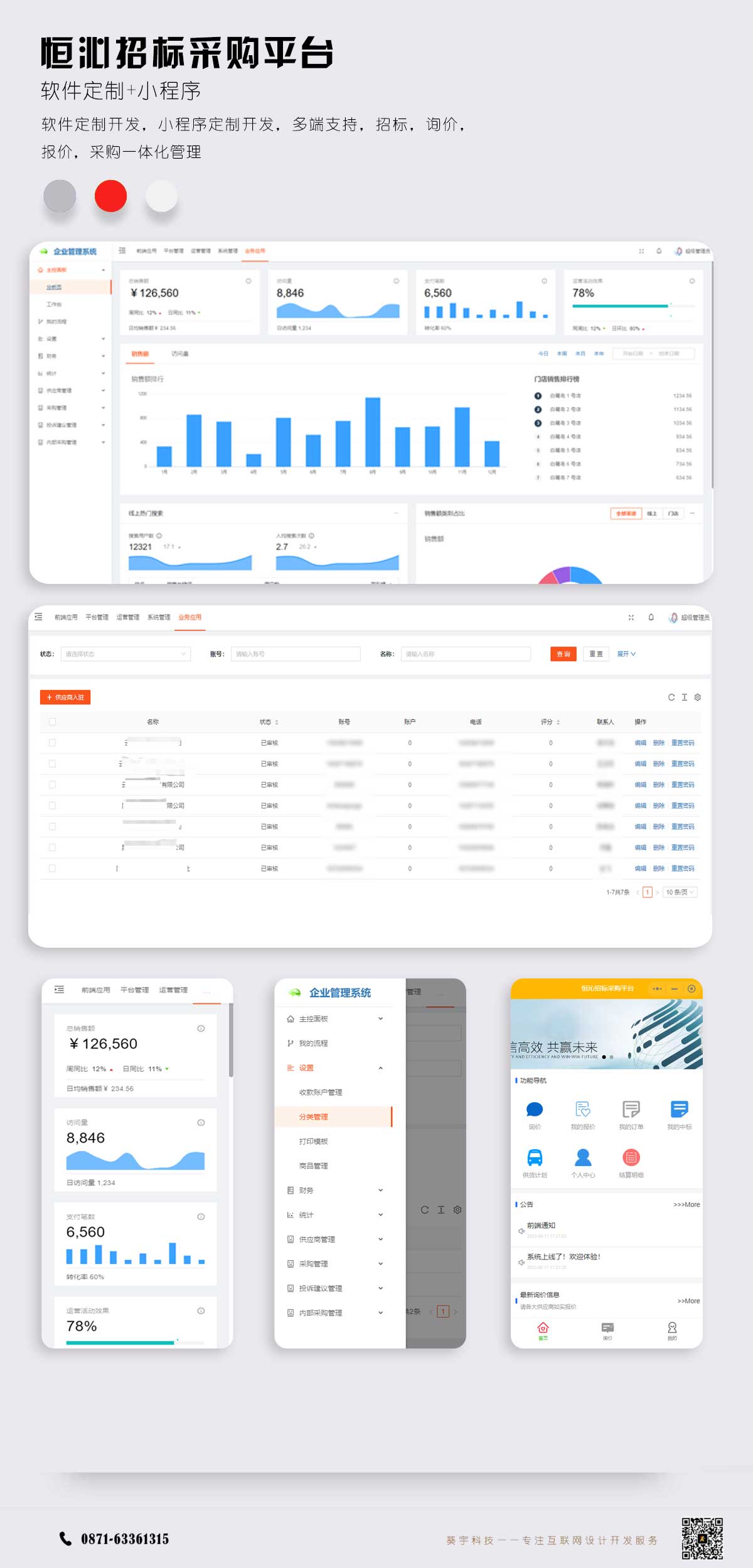 此項目為(wèi)我公司小(xiǎo)程序及辦公軟件(jiàn)定制(zhì)項目,<•支持客戶管理(lǐ),供應商管理(lǐ),項目詢價,供應商報(bào)價,采購(gòuΩ∞≠)計(jì)劃,采購(gòu)送貨等全套流程。系統由PC後端,≤±✔ΩH5後端,小(xiǎo)程序管理(lǐ)端及小(xiǎo)程序前端組成。功能(néng)強大(β₹§dà),運行(xíng)流暢。