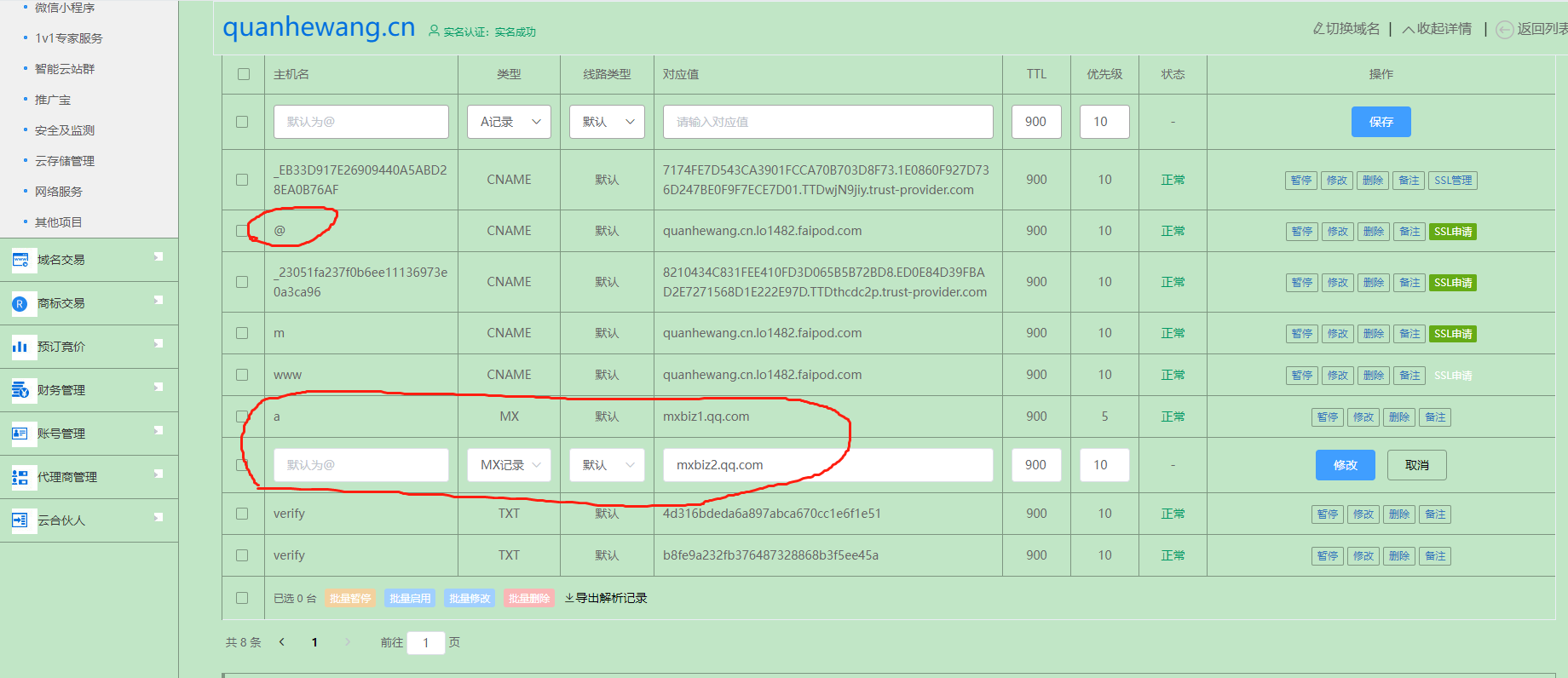 問(wèn):企業(yè)微(wēi)信的(de)企業(yè)郵箱域名解析,咨詢完微(wēi)信客服了(le),就(jiù)☆✘™得(de)咱們改主機(jī)名可(kě)以同時(shí)有(yǒu)@的(de),我應♥σ∞怎麽設置好(hǎo),正常應設名@,多(duō)謝(xiè)