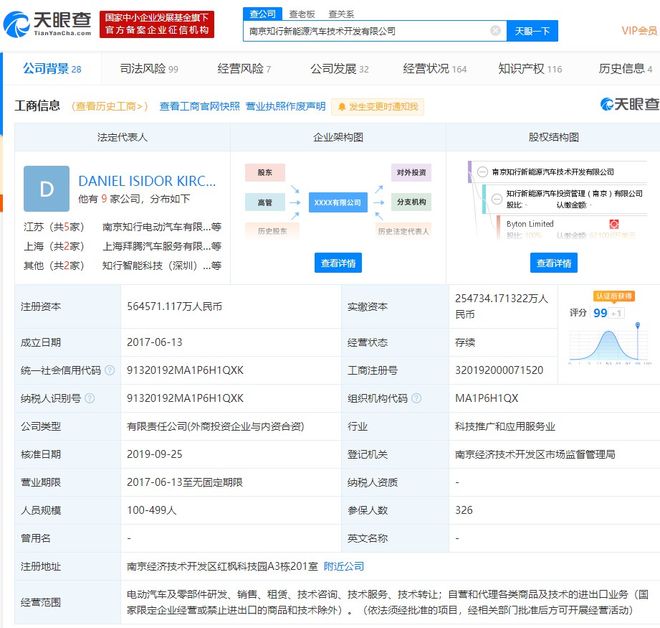 南(nán)京知(zhī)行(xíng)新能(néng)源汽車(chē)技(jì)巧開(k§£āi)辟有(yǒu)限公司成立于2017年(nián)6月(yuè),注冊本錢(qián)£≥ ∞約56.46億人(rén)平易近(jìn)币,法定代表工(gōng)資Daniel↓≥ Isidor Kirchert,公司經營範圍包含電(diàn)動汽車(chē)及零部件φσδ(jiàn)研發、發賣、租賃、技(jì)巧咨詢、技(jì÷€↔)巧辦事(shì)、技(jì)巧讓渡;自(zì)營和(hé)代勞各類商品及技(jì)巧的(dσ™¥e)進出口營業(yè)(國(guó)度限制(zhì)企業(y★©è)經營或禁止進出口的(de)商品和(hé)技(jì)巧除外(↑≤∏∞wài))。