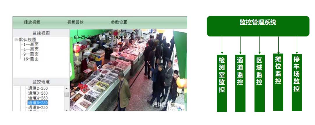 08-智能(néng)監控管理(lǐ)系統 本系統是(shì)指與監控設備廠(chǎng)家(jiā)提供的(de)監控設備實現(xiàn)α×₩無縫隙對(duì)接,在平台上(shàng)能(néng)實時(shí)查看(•♣♥kàn)監控錄像,回放(fàng)監控錄像從(cóng)而方便管理(lǐ)者對₩§£(duì)農(nóng)貿市(shì)場(chǎng)管理(lǐ)。