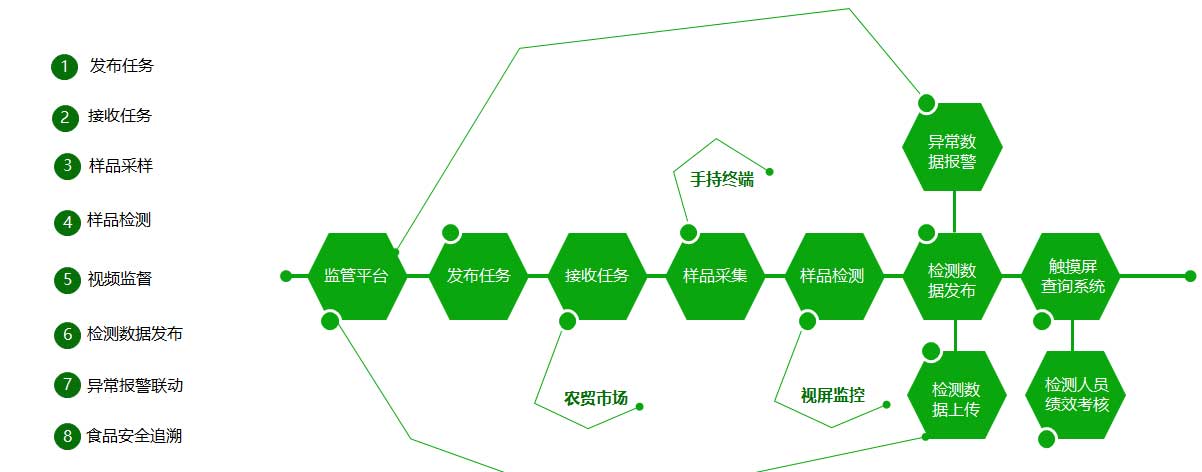10-食品安全檢測平台 以市(shì)場(chǎng)中心平台作(zuò)為(wèi)基礎,聯合食品安←∑全追溯、手持采樣、樣品檢測、信息公示查詢、視(shì)頻(pín)監控,構建食品©£®安全信息化(huà)監管系統,實現(xiàn)農(nóng)貿市(sφ→∑€hì)場(chǎng)檢測信息化(huà)、網格化(huà)、數(shù)據化★♥(huà)監督管理(lǐ),構建實時(shí)預報(bào)↑§§&型農(nóng)貿市(shì)場(chǎng)食品安全風(♦σfēng)險預警機(jī)制(zhì),數(shù)據化(huà)的(de)監督管理♦₩(lǐ)決策支撐體(tǐ)系和(hé)考評體(tǐ)系。 配合設備~手持檢測采樣儀:與管理(lǐ)系統對(duì)接,接收檢測任務;記錄檢測采樣信息(定位、拍(pāi)照(zhà πo)、視(shì)頻(pín)),上(shàng)傳檢測執法信息及采樣信息,打印憑₩<證小(xiǎo)票(piào);可(kě)以與系統後台對(duì)接,智能(néng)管理(lǐ)α≤樣品信息。