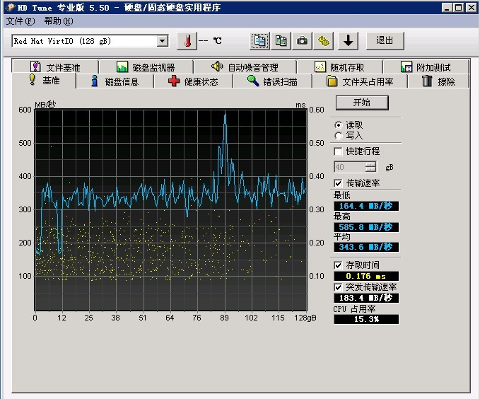 吞吐量主要(yào)指大(dà)文(wén)件(jiàn)的(↑σde)連續讀(dú)寫速度,在大(dà)文(wén)件(jiàn)的(de)複制(zhì ££↓)、備份等場(chǎng)景适用(yòng),用(yòng)“HD Tune專業(yè)版©"♥¥”中的(de)“基準”測試功能(néng)即可(kě)測試出磁盤的(de)吞吐量,一(yī)般傳統Ω€φ£機(jī)械sata硬盤的(de)順序讀(dú)寫速度為(wèi)